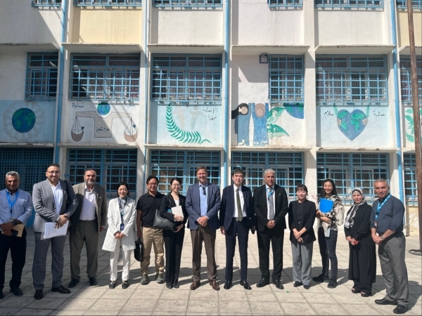 2025年9月22日、浅利秀樹駐ヨルダン大使は、国連パレスチナ難民救済事業機関(UNRWA)が運営するイルビド県のフスン女子学校を訪問し、日本が支援中の学校のカウンセラーを通じた「メンタルヘルス及び心理社会的支援」活動を視察しました。この機会に浅利大使は、同じイルビド県にあるガーデン難民キャンプも訪問し、シリアから逃れてきたパレスチナ難民の生活状況も視察して日本が支援する現金給付受給家族と面会しました。
