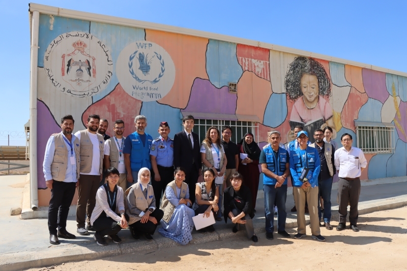 On 1 October 2025, Ambassador ASARI Hideki of Japan to the Hashemite Kingdom of Jordan visited the Azraq Refugee Camp, to observe the impact of the ongoing Japan-funded project “ Provide General Food Assistance to Refugees and Other Crisis-affected Populations as well as School Feeding to Vulnerable Jordanians and Refugees in Jordan”. The visit included touring a WFP-contracted supermarket where refugees redeem their monthly cash transfer assistance to purchase food of their choice, meeting with a female-headed family receiving WFP cash assistance and visiting a refugee-run community kitchen, where women prepare and package nutritious meals for school children benefiting from the National School Feeding Program.